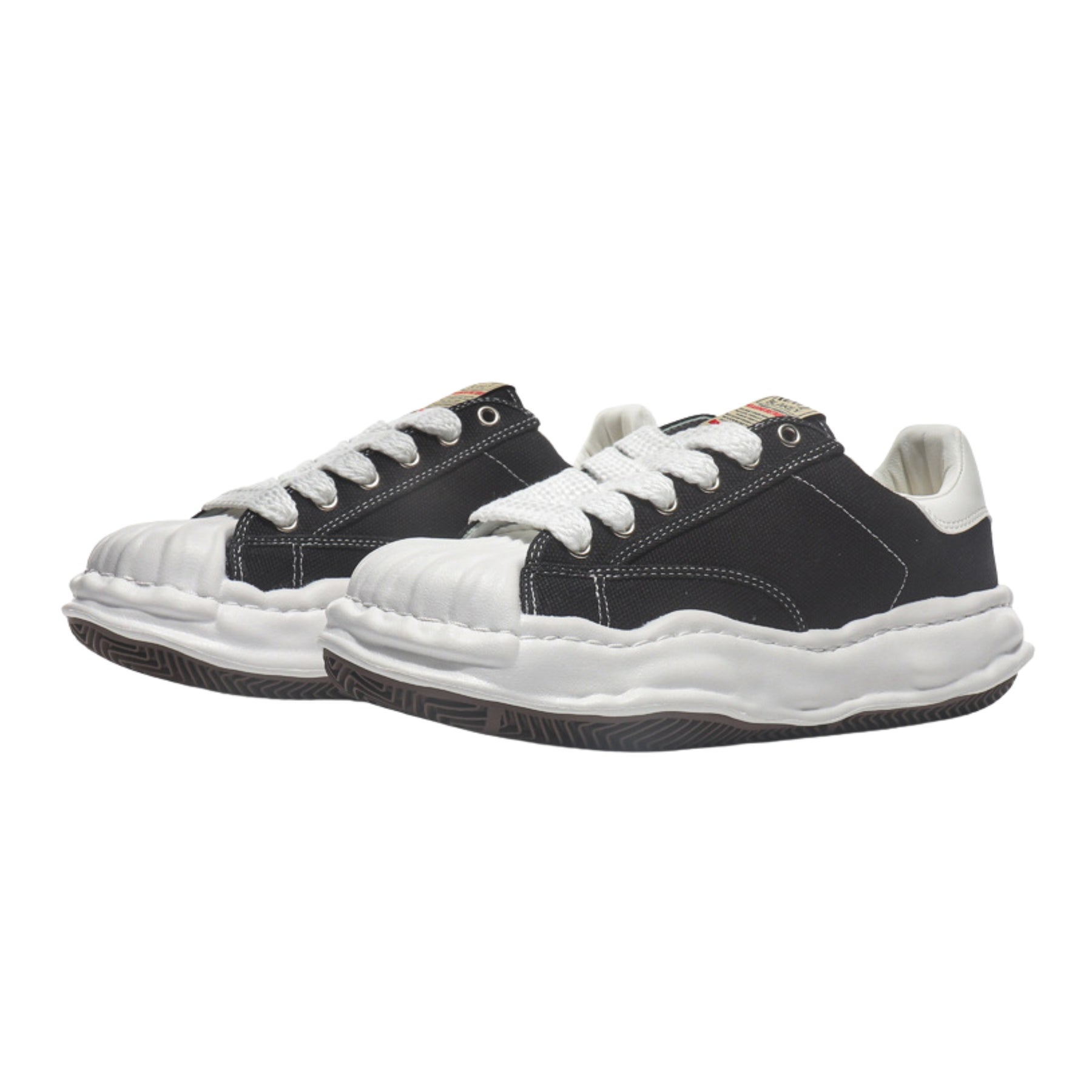 UNLOCK YOUR DRIP. The Mizuno Low is a sneaker with a shell toe front and strong stitching that stands out. It has a chunky sole that makes you a bit taller and lasts a long time. The black-and-white look makes it easy to wear with anything.